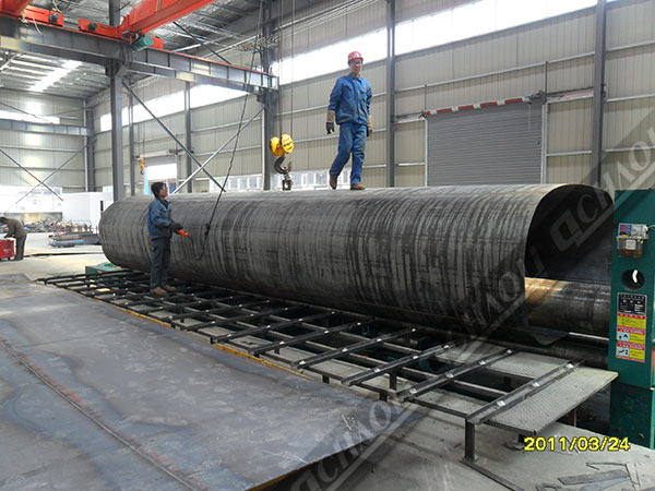 掛車用卷板機(jī)增加托輥及上輥撓曲補(bǔ)償可使筒件取得較好的直線度。可增加外托料架及內(nèi)升料架使操作更便利,更少人工。可配合前后道工序作生產(chǎn)線優(yōu)化使用。