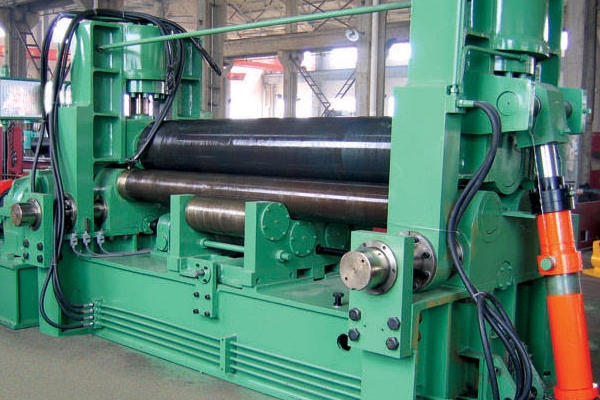 四輥卷板機(jī)卷制時(shí)板料對中方便,工藝通用性廣,可以矯正卷制時(shí)產(chǎn)生的扭斜、錯(cuò)邊等缺陷;同時(shí)一次上料即可完成板料端部預(yù)彎和卷制成形,剩余直邊小,是卷制圓形、弧形工件的理想設(shè)備。